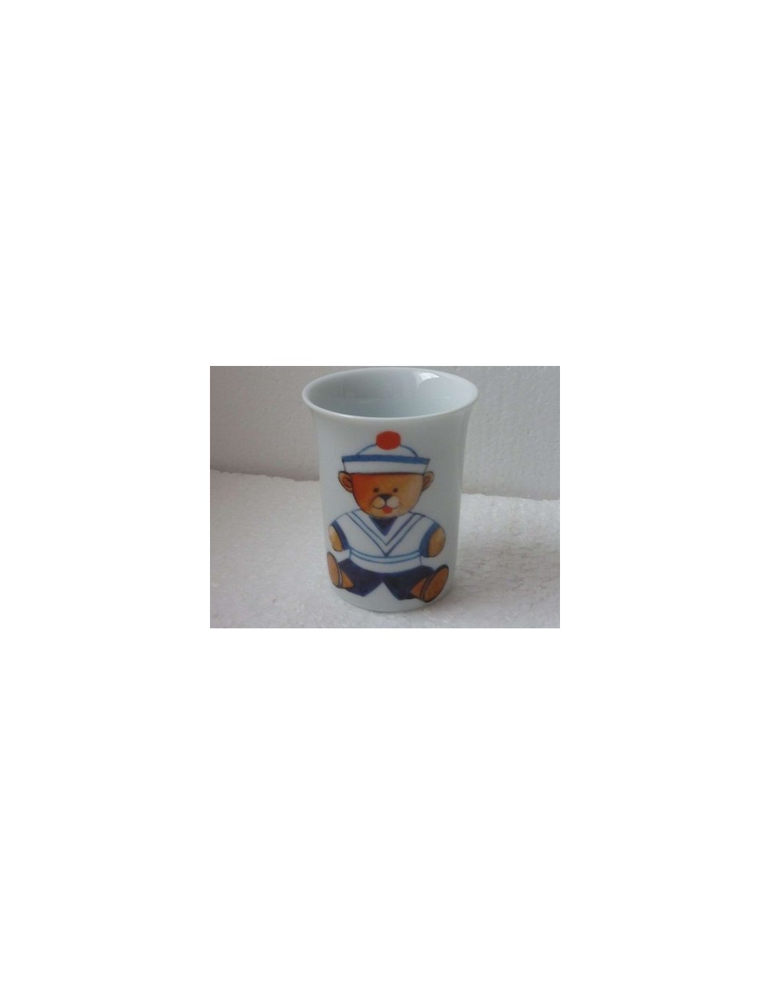 Un verre à dents amusant qui donnera, à l'enfant, l'envie de se laver les dents et d'y mettre sa brosse à dents. Verre hauteur 9 cm, diamètre 7 cm Porcelaine décorée à la main, cuite à 1100°C. Les décors ainsi fixés ne craignent ni le lave-vaisselle, ni le micro-ondes.
