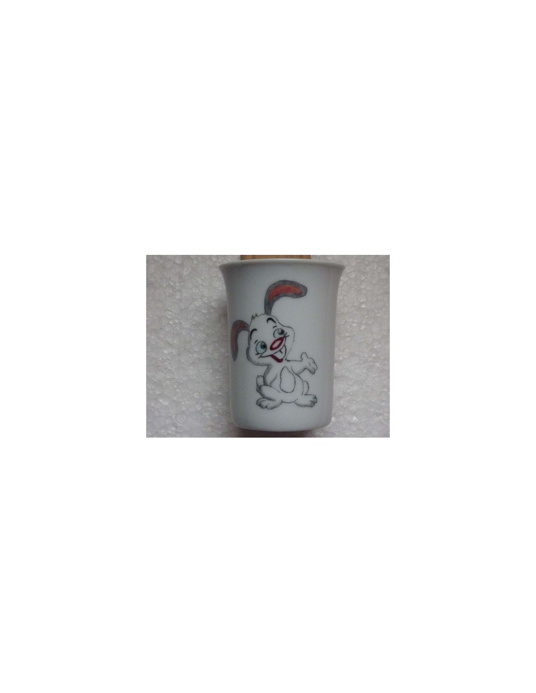 Un verre à dents amusant qui donnera, à l'enfant , l'envie de se laver les dents et d'y mettre sa brosse à dents. Verre hauteur 9 cm, diamètre 7 cm Porcelaine décorée à la main, cuite à 1100°C. Les décors ainsi fixés ne craignent ni le lave-vaisselle, ni le micro-ondes.