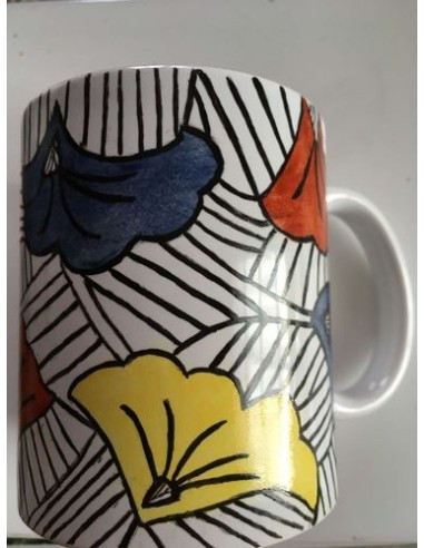 Mug blanc décoré. Tasse blanche avec une anse, qui est adaptée aux temps modernes : elles passent au lave-vaisselle et au micro-ondes ! Dimensions :-8 cm de diamètre, 9,5 cm de hauteur, anse de 6,5 cm environ Une idée-cadeau originale.