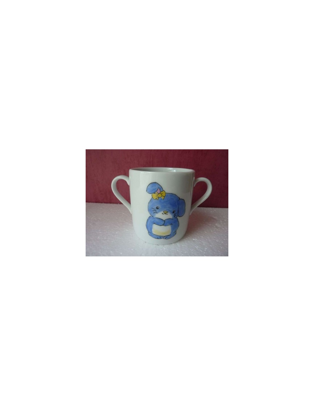 Tasse 2 anses pour bébé ou enfant hauteur 7,5 cm, diamètre 7 cm. Elle passe au lave-vaisselle et micro ondes