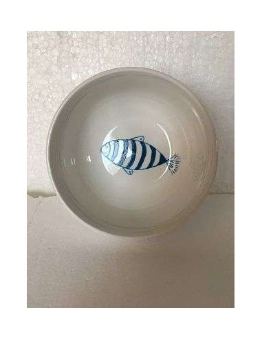 Bols petit déjeuner, céréales, en porcelaine.Au fond du bol un poisson bleu et à l'extérieur « Heureux comme un poisson dans l'eau » avec des vagues. Bols en porcelaine culinaire, supporte le passage au four, le lave-vaisselle et micro-ondes.
