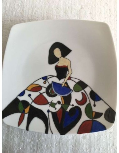 Très belle assiette multicolore Dimension : 20 x 20 cm compatibles pour aller au micro-ondes, au lave-vaisselle, au four et utilisable avec un couteau.