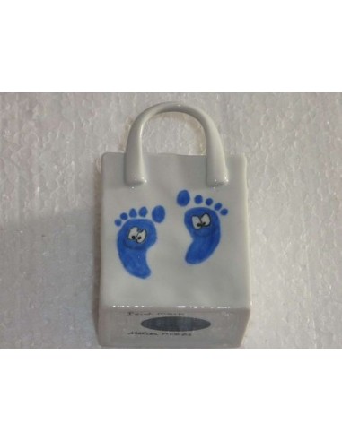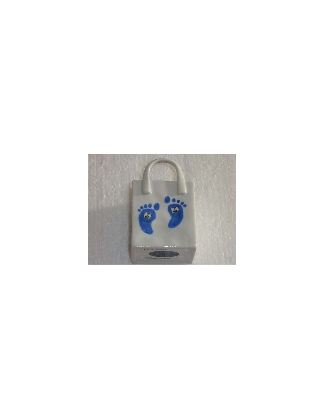 Sac en porcelaine peint à la main, peut servir comme vase ou portes objets (brosse à cheveux, Crayons, brosse à dents, etc. Mais aussi pour les draguées. Dimension : 6 cm x 5 cm (épaisseur) x 9 cm de hauteur total (avec les anses). Emballage soigné.