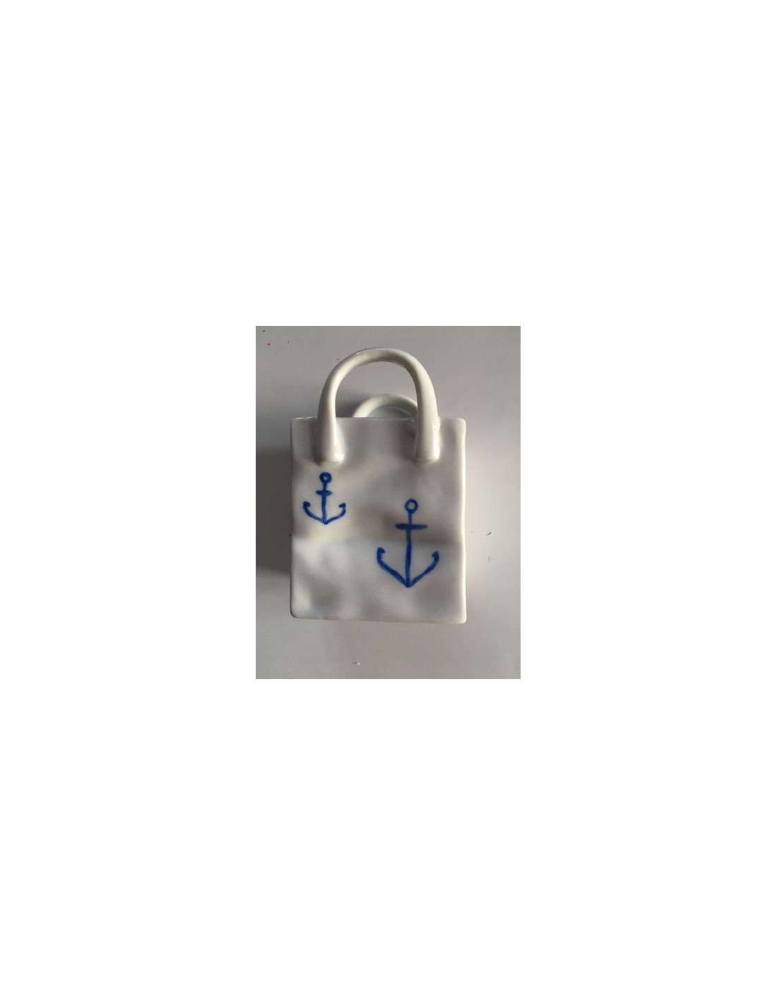 Sac en porcelaine peint à la main, peut servir comme vase ou portes objets (brosse à cheveux, Crayons, brosse à dents etc. Mais aussi pour les draguées . Dimension : 6 cm x 5 cm (épaisseur) x 9 cm de hauteur total (avec les anses). Emballage soigné.